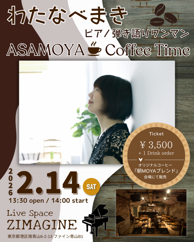 2026年2月14日、ピアノ弾き語りワンマン”ASAMOYA Coffie Time”開催決定